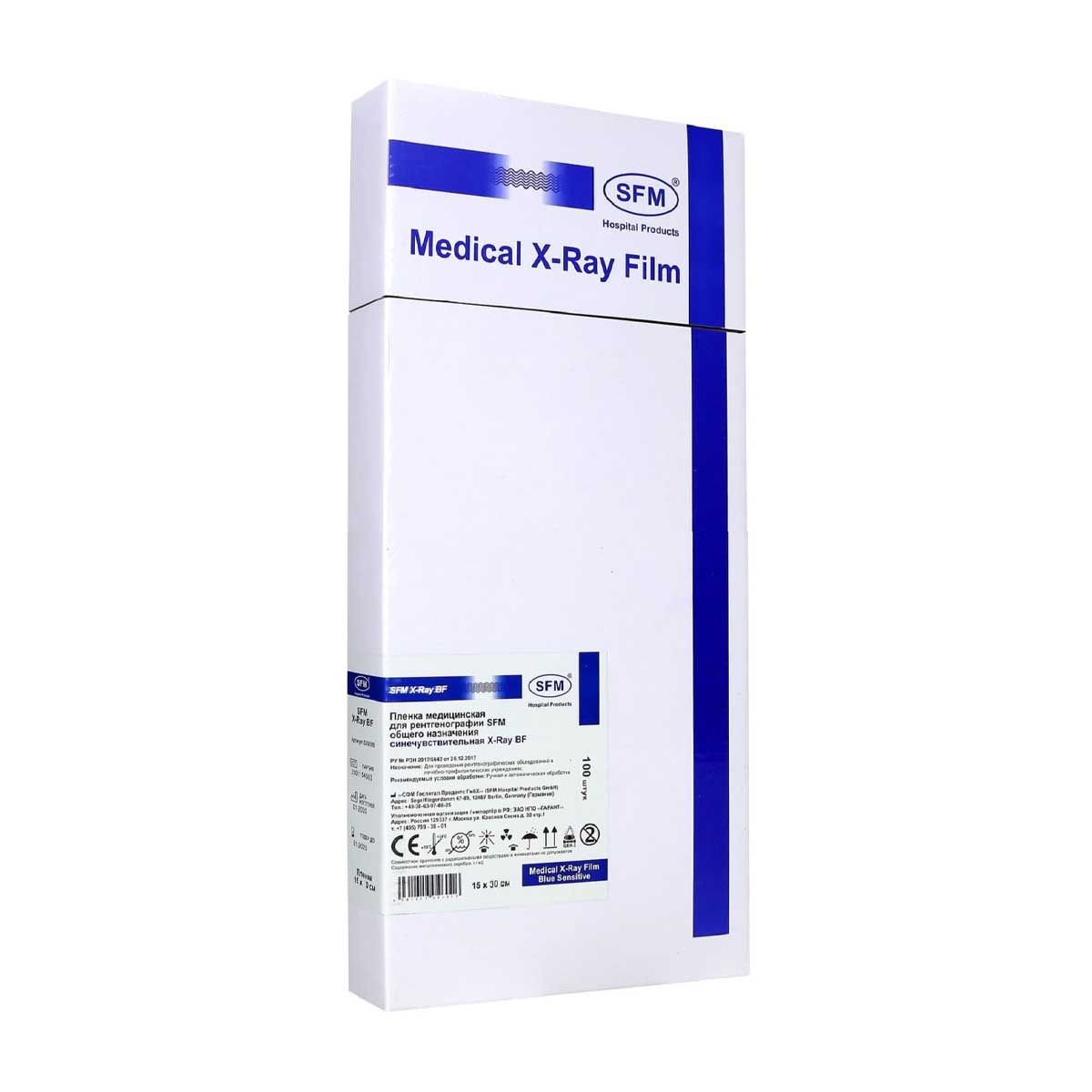 15 х 30 см (100 листов) - Синечувствительная Пленка медицинская для рентгенографии SFM общего назначения X-Ray BF, (Германия)