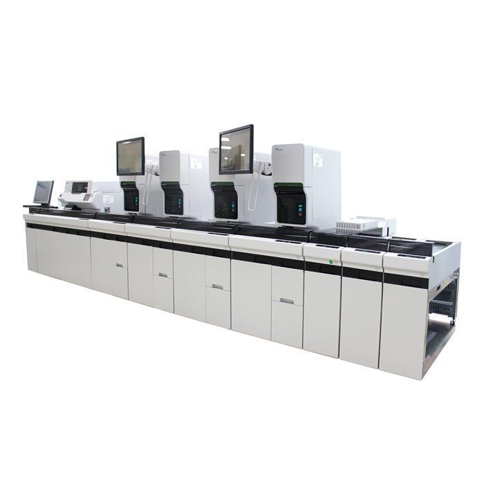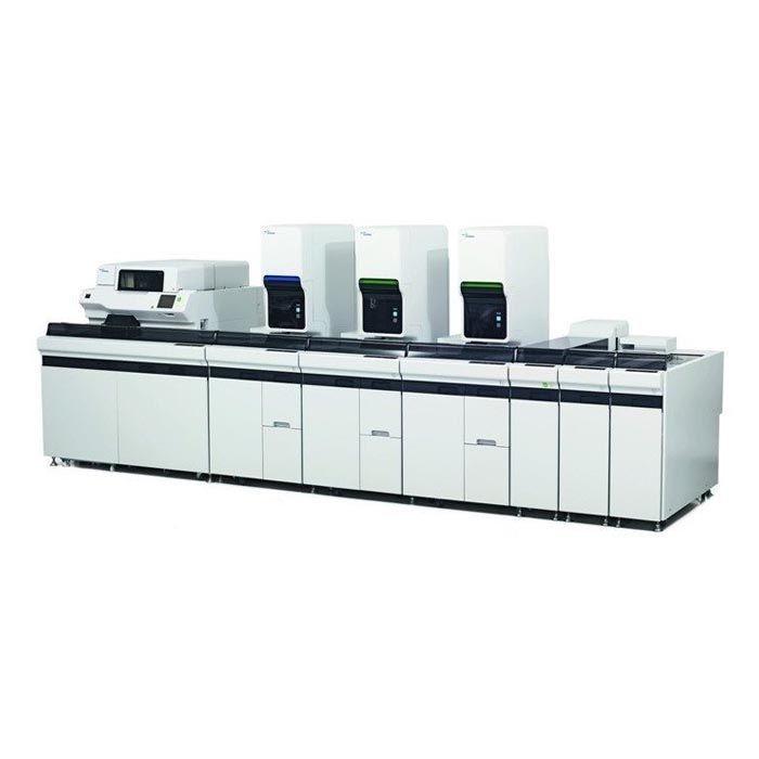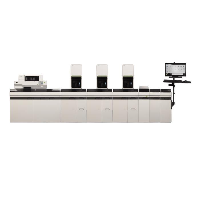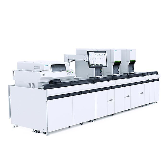 XN-9000 Compact Integration — помимо модулей для анализа и аппарата для окрашивания SP-10, включает в себя возвратную линию на рабочей стороне для перемещения пробирок в точку выхода. Конфигурация идеально подходит для прямой гематологической обработки при условии, что типы образцов единообразны;