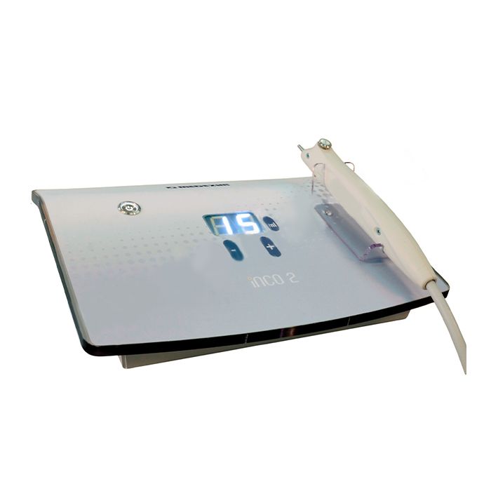 Аппарат INCO2 оборудован специальным дозатором и аппликатором для проведения процедуры. Для выполнения укола используется небольшая тонкая игла, которая вставляется в аппликатор. На лицевой панели устройства расположены сенсорные клавиши для установки необходимой врачом дозы CO2. Кроме того, аппарат оснащен выключателем и разъемом для подключения к источнику сетевого напряжения. Иголка для инъекции должна быть стерильной, а перед процедурой необходимо провести дезинфекцию участка кожи, предназначенного для инъекции.