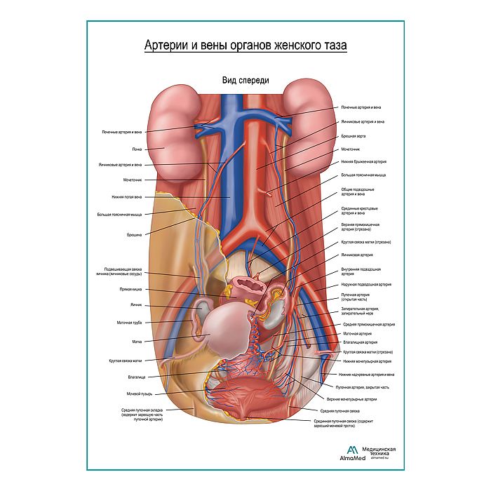 Артерии и вены тазовых органов женщины (вид спереди) плакат глянцевый А1+/А2+