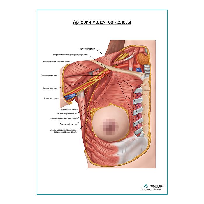 Артерии молочной железы плакат глянцевый А1+/А2+