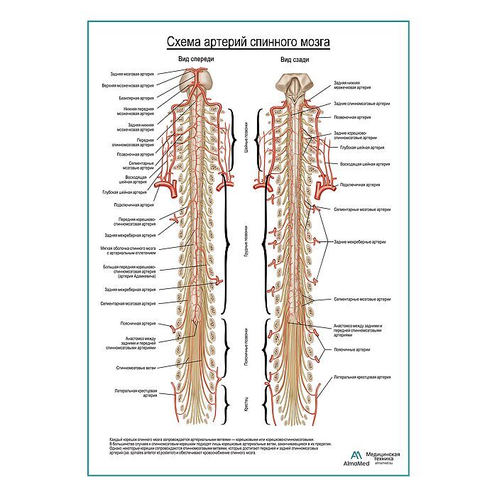 Схема артерии спинного мозга плакат глянцевый А1+/А2+