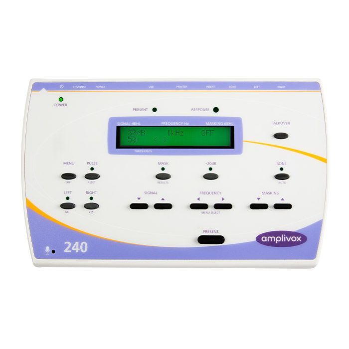 Диагностический аудиометр модели 240 от Amplivox предоставляет врачам-сурдологам возможность измерения остроты слуха для определения типа и степени тугоухости. Устройство подходит для выездных обследований и работы с пациентами в условиях, отличных от обычных клинических.