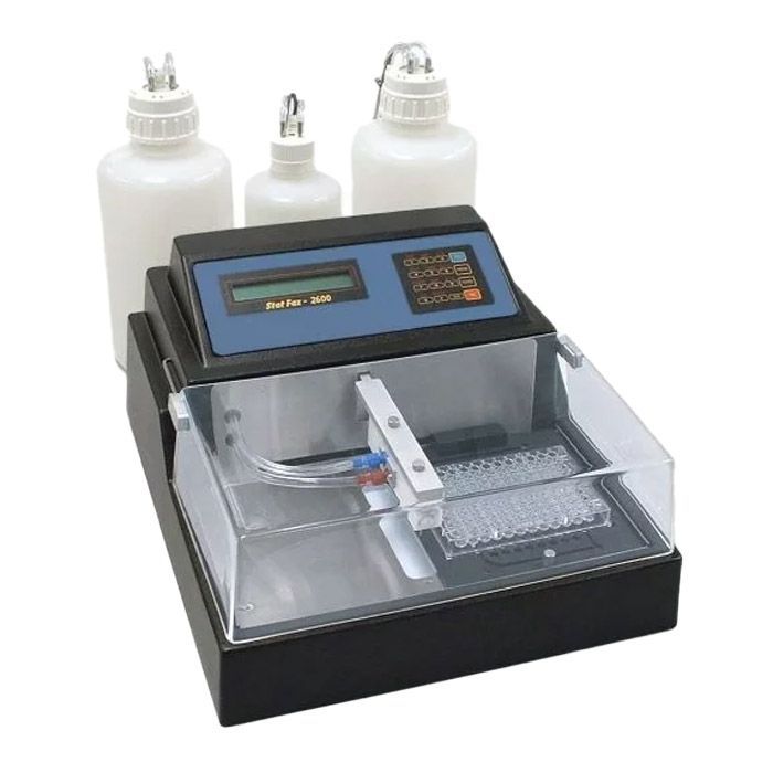 8-канальная диспенсирующая и аспирирующая головка (12- или 16-канальная по выбору)ложе планшета — из нержавеющей сталибутыли для промывающего, очищающего растворов и для отходов — с электронным датчиком уровня всех бутылейакриловая крышка для защиты от аэрозолей
