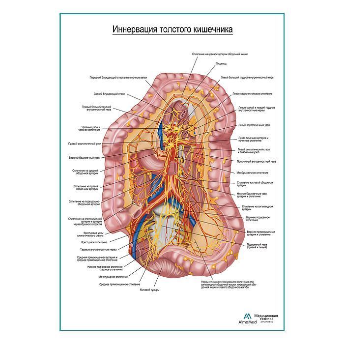 Автономная иннервация толстого кишечника плакат глянцевый А1+/А2+