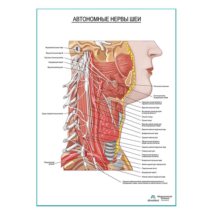 Автономные нервы шеи плакат глянцевый А1+/А2+