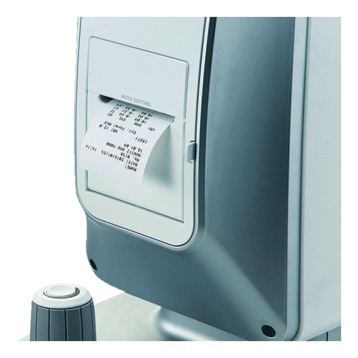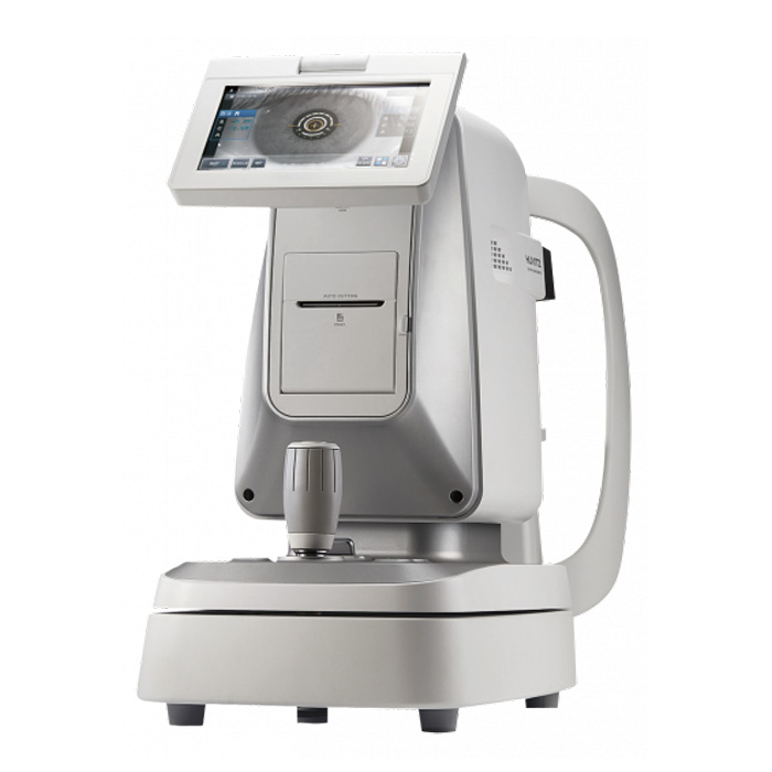 Многофункциональный джойстик. Диапазон перемещений: вверх - вниз ±15 мм. Преломляющая способность роговицы: 25.96D~67 / 560D(шаг:0.05,0.12.0.25D) (при эквивалентном показателе преломления роговицы 1.3375). Дисплей: цветной TFT LCD монитор c диагональю 7’’ и сенсорной панелью управления Встроенный принтер: термопринтер.