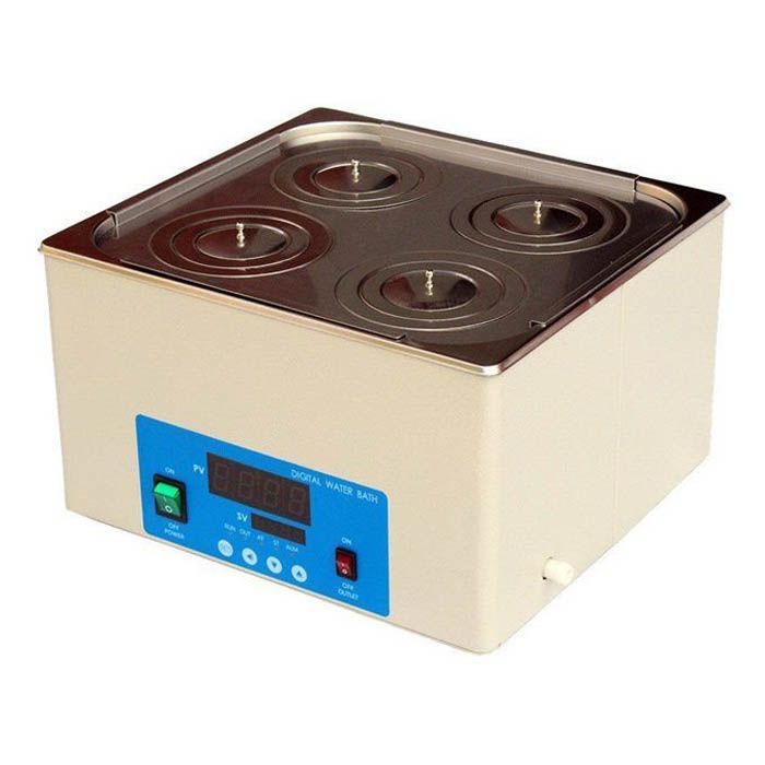 Водяная баня оснащена специальным элементом для защиты от перегрева во время работы. Предусмотрена возможность работать с несколькими колбами сразу. Они размещаются в трех стальных кольцах. Допустима погрешность рабочей температуры на 1 градус.