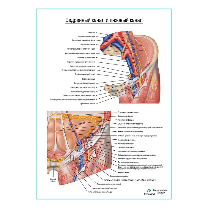 Бедренная канал и паховый канал плакат глянцевый А1+/А2+