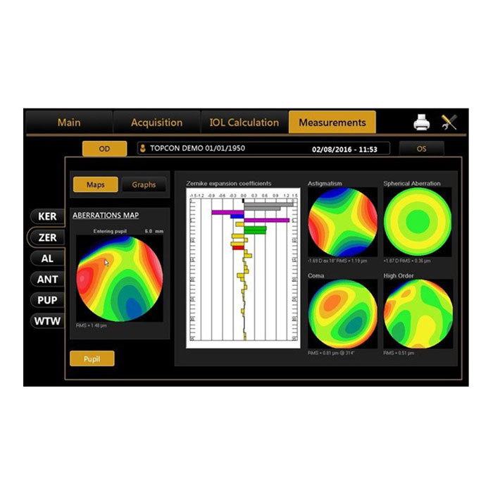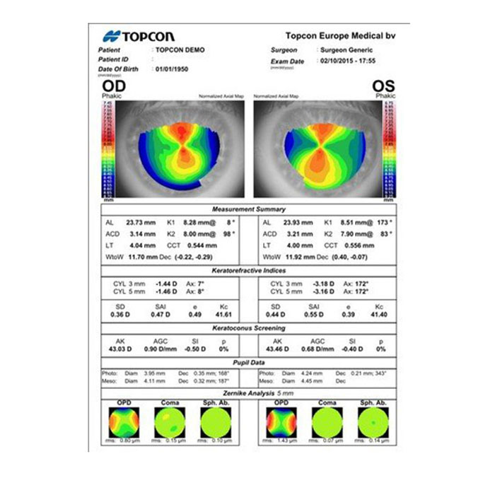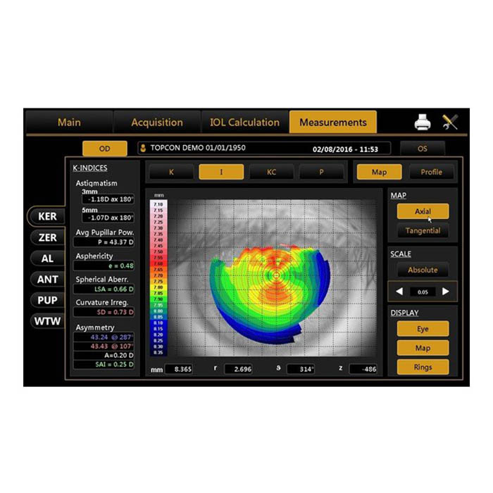 Доступна функция скрининга кератоконуса и анализа Зирке.