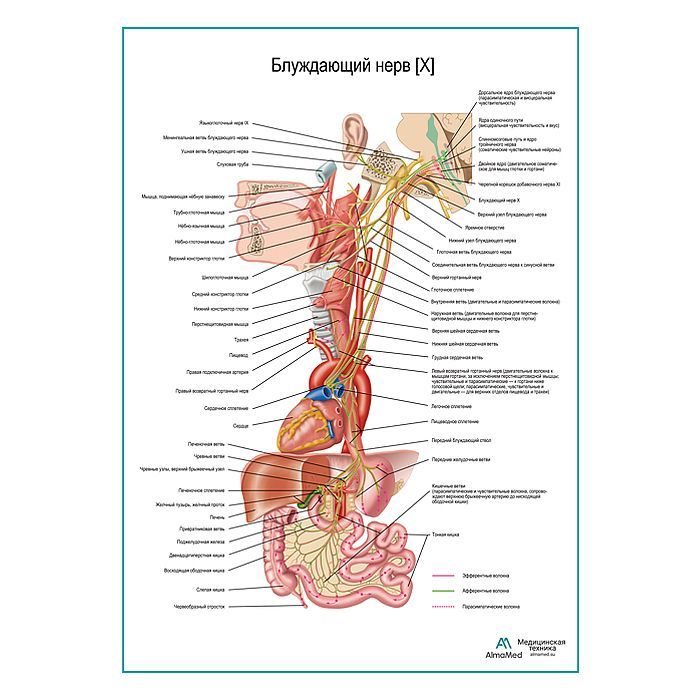 Блуждающий нерв (X). Схема плакат глянцевый А1+/А2+
