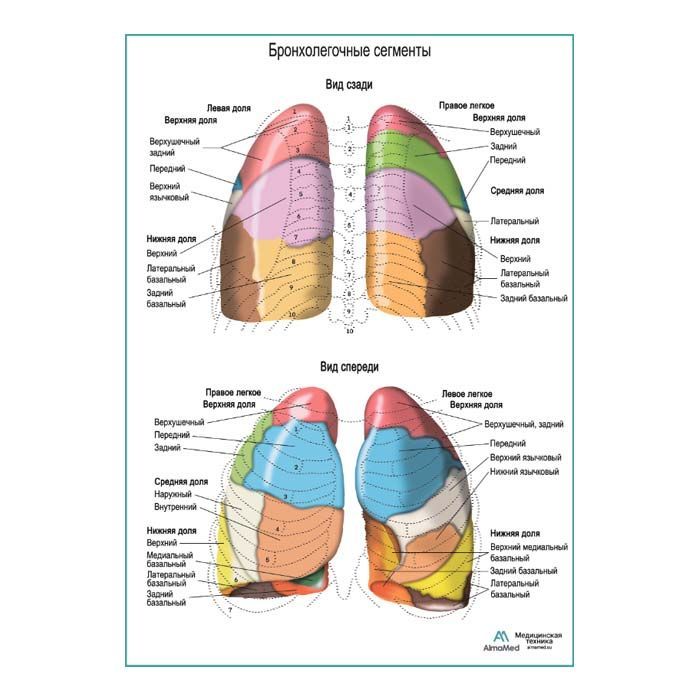 Бронхолегочные сегменты плакат глянцевый А1+/А2+