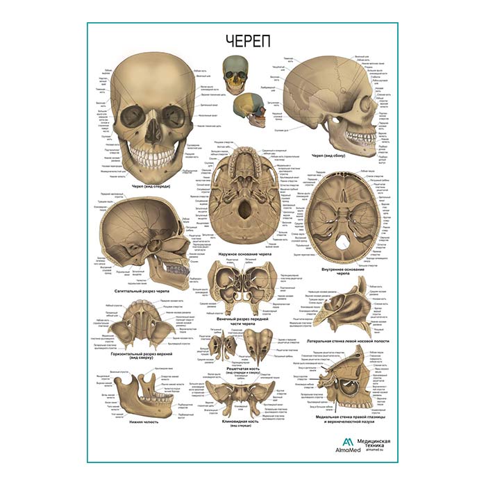 Череп человека, плакат глянцевый А1/А2