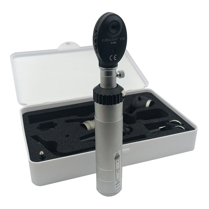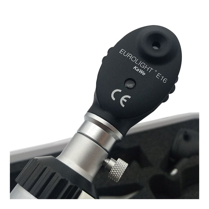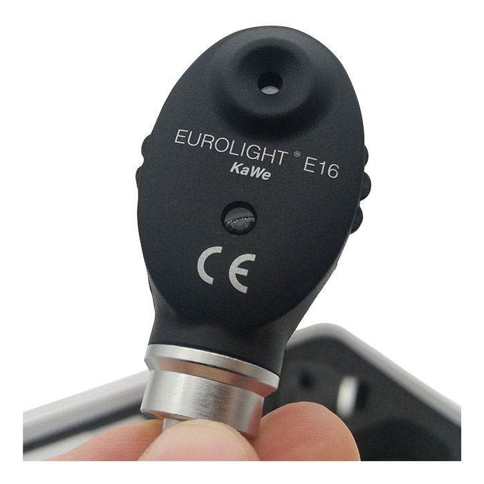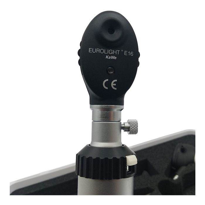головка офтальмоскопа KaWe Евролайт Е16 с плавно корректирующим диапазон линз от +20 до -20 диоптрий колесиком, апертур 6, в качестве источника света используется лампа вакуумная, арт. 12.75113.003 (28947);