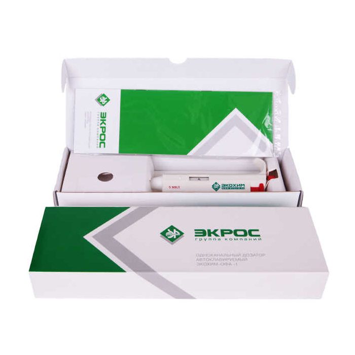 Стандартная комплектация дозатора Экохим-ОФА-5: дозатор,  паспорт (свидетельство о поверке),  инструкция по использованию,  сменные наконечники,  ключ для калибровки,  смазка. * Комплектация приборов может изменяться заводом изготовителем, уточняйте у менеджера.