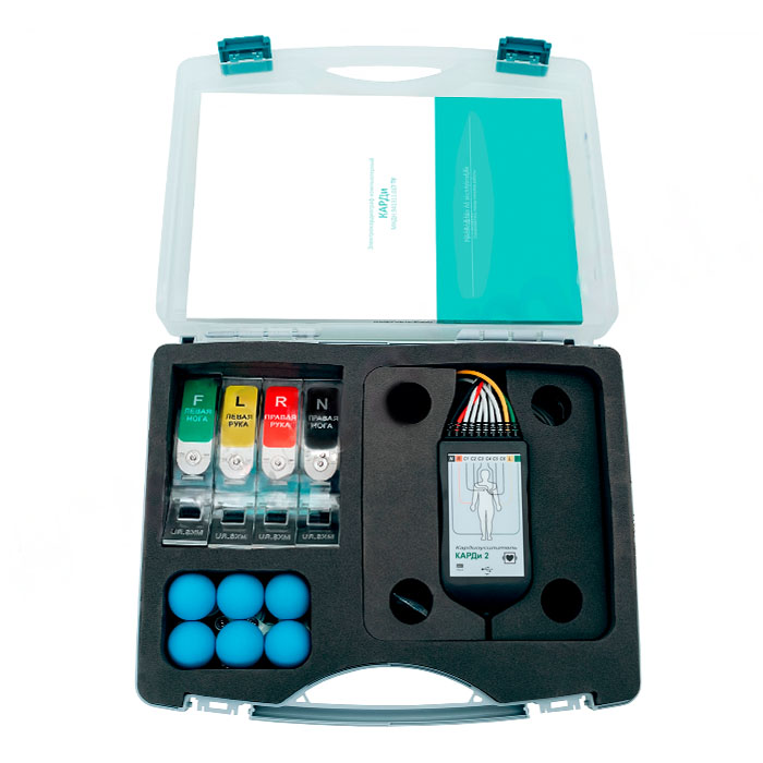 Стандартная комплектация электрокардиографа: кардиоусилитель ЭК12Ц-01 Карди2 с комплектом электродов на конечности и грудными в транспортном кейсе; документация (руководство по экплуатации, паспорт); аксессуары (кардиоспрей, фиксатор усилителя); картотека пациентов «Здоровье-Экспресс» – 2.2.18244; модуль «ЭКГ – 12» – 1.4.18246; модуль «Оценка факторов риска ХНИЗ» – 3.1.17418; модуль «Оценка факторов сердечно-сосудистого риска по шкале SCORE» – 1.1.17409; модуль «KARDI2N2EMIAS» – 1.0. * Комплектация приборов может изменяться заводом изготовителем, уточняйте у менеджера.
