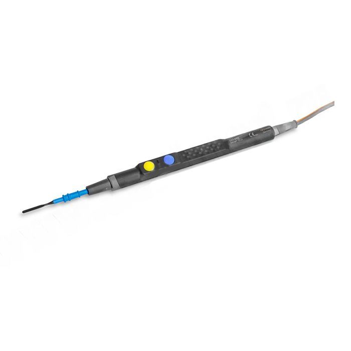 220-045 Держатель монополярных электродов с кнопками управления (РЕЗАНИЕ, КОАГУЛЯЦИЯ). Длина кабеля 4,5 метра.Для электродов со штекером 2,4 мм. Трехполюсная вилка. Автоклавируемый (не менее 200 циклов)