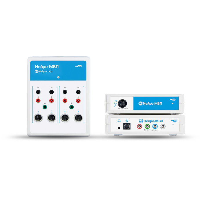 Комплектация товара: Блок усилителей USB "Нейро-МВП" - 2 шт Блок аудиовидеостимулятора - 1 шт Блок управления токовым стимулятором - 1 шт Штатив настольный "ШН-4Н" - 1 шт Крепление к штативу - 1 шт Планка крепления двух блоков усилителя на штатив - 1 шт Клавиатура функциональная КФ-02 в комплекте с кабелем и адаптером - 1 шт Клавиатура функциональная "КФ-02" - 1 шт Адаптер Bluetooth - 1 шт Кабель USB, А-В - 2 шт Руководство по эксплуатации "КФ-02" - 1 шт Кнопка регистрации реакции пациента, разъем USB - 1 шт Блок педального управления - 1 шт Кабель USB, А-В - 1 шт Удлинитель SVGA - 1 шт Слуховой стимулятор , аудиометрические наушники) «TDH-39» (разъем 3.5, стерео) - 1 шт Стимулятор зрительный, очки светодиодные - 1 шт Колонка звуковая - 1 шт Гель электродный «Унимакс», 250 г - 1 шт Паста электродная клеящая «Унипаста», 120 г - 1 шт Паста подготовительная EVERI, 160 г - 1 шт Электрод стимулирующий с постоянным межэлектродным расстоянием ЭС-2, взрослый - 1 шт Стимулятор нервов вилочковый "Скат" - 1 шт Электрод чашечковый с кабелем отведения (8 шт, 1 м) - 2 шт Электрод стимулирующий отводящий на палец широкий "ЭСО-2", кольцевой - 1 шт Электрод заземляющий с кабелем отведения ЭЗ-1, малый - 1 шт Электрод заземляющий с кабелем отведения ЭЗ-2, средний - 1 шт Электрод поверхностный отводящий с постоянным межэлектродным расстоянием ЭП-1, детский - 1 шт Электрод поверхностный отводящий с постоянным межэлектродным расстоянием ЭП-2, взрослый - 1 шт Электрод поверхностный отводящий с переменным межэлектродным расстоянием с кабелем отведения ЭПП-1 - 2 шт Адаптер для подключения концентрических игольчатых электродов D60451 - 2 шт Электрод одноразовый для ЭКГ F9049 22х34мм, Fiab, Италия - 100 шт Кабель для подключения одноразовых электродов с коннектором «аллигатор», touch-proof, красный, 0.2 м - 1 шт Кабель для подключения одноразовых электродов с коннектором «аллигатор», touch-proof, черный, 0.2 м - 1 шт Электрод одноразовый концентрический игольчатый В50600, l=37 мм, d=0,45 мм - 25 шт Объединитель однополярных гнезд - 5 шт Рулетка измерительная - 1 шт Монитор 18,5" - 1 шт Концентратор USB внешний "КМ-7-2" - 2 шт Блок разветвителя USB-порта "КМ-7-2 - 1 шт" Кабель USB, А-В - 1 шт Кабель сетевой CEE 7/7 – IEC C13 - 1 шт Руководство по эксплуатации "КМ-7-2" - 1 шт Трансформатор сетевой развязывающий «ТМ-630» - 1 шт Датчик температуры USB - 1 шт Держатель для электродов - 1 шт Маркер - 1 шт Средство перевязочное и фиксирующее Transpore, 5 см х 9.1 м - 1 шт Руководство по эксплуатации "Нейро-МВП, Нейро ЭРГ" - 1 шт Руководство по быстрому старту "Нейро-МВП.NET" - 1 шт С.Г. Николаев "Атлас по электромиографии" - 1 шт Методические указания "Нейро-МВП" - 1 шт Методические указания "Проведение электронейромиографических исследований на миографах производства ООО "Нейрософт" - 1 шт "Электромиография: клинический практикум" С.Г. Николаев - 1 шт Методические указания "Инструкция по обработке концентрических игольчатых электродов для проведения миографии" - 1 шт Установочный комплект программы для ЭВМ "Нейро-МВП.NET" - 1 шт Комплект упаковочной тары - 1 шт Лицензия на использование программы для ЭВМ "Нейро-МВП.NET" с дополнительным программным модулем "Нейро-МВП.NET/ВП" - 1 шт Лицензия на использование программы для ЭВМ "Нейро-МВП.NET" с дополнительным программным модулем "Нейро-МВП.NET/ЭМГ" - 1 шт * Комплектация приборов может изменяться заводом изготовителем, уточняйте у менеджера.