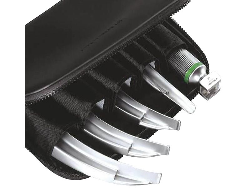 Мягкий футляр для ларингоскопа нужен, чтобы хранить и перевозить набор. Внутри есть 5 отделений для рукояти и 4 клинков. Возможно хранение 5 клинков. Для изготовления компактной сумки применяют искусственную кожу, внутренние отделения выполнены из ткани, застежка – молния. Необходима для защиты инструмента, предотвращает механическое повреждение, обеспечивает длительное пользование. Оснащают отоларингологов, анестезиологов, реаниматологов.