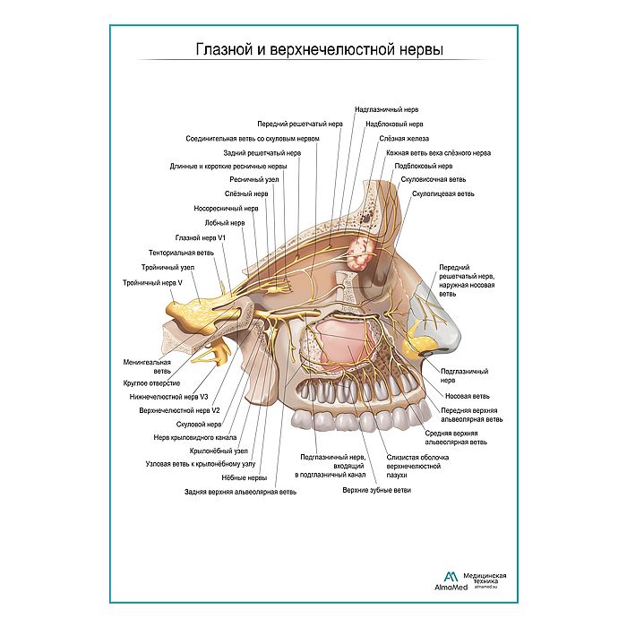 Глазной и верхнечелюстной нервы плакат глянцевый А1+/А2+