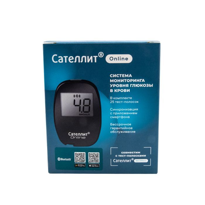 Стандартная комплектация товара: глюкометр Сателлит Online Глюкометр Сателлит Online Тест-полоски Сателлит Экспресс (25 шт.) Батарейка (элемент питания) Мягкий футляр для прибора Ручка для прокалывания автоматическая Сателлит Полоска Контроль Гарантийный талон Инструкция по эксплуатации * Комплектация приборов может изменяться заводом изготовителем, уточняйте у менеджера.
