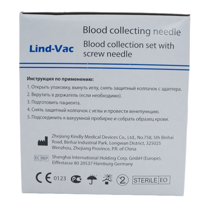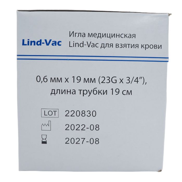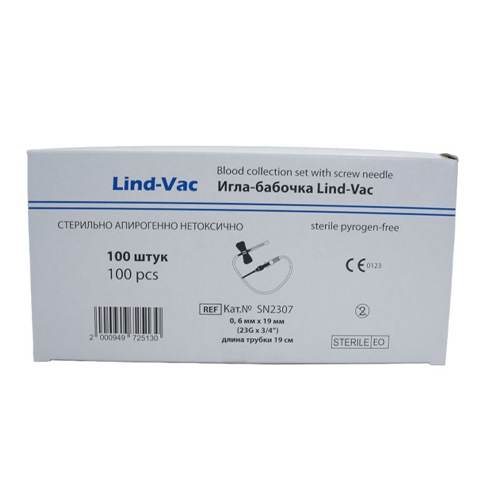 Игла-бабочка Lind-Vac 23G x 3/4'' x 7'' 0.6мм х 19 мм, длина трубки 19 см, 100 шт/уп