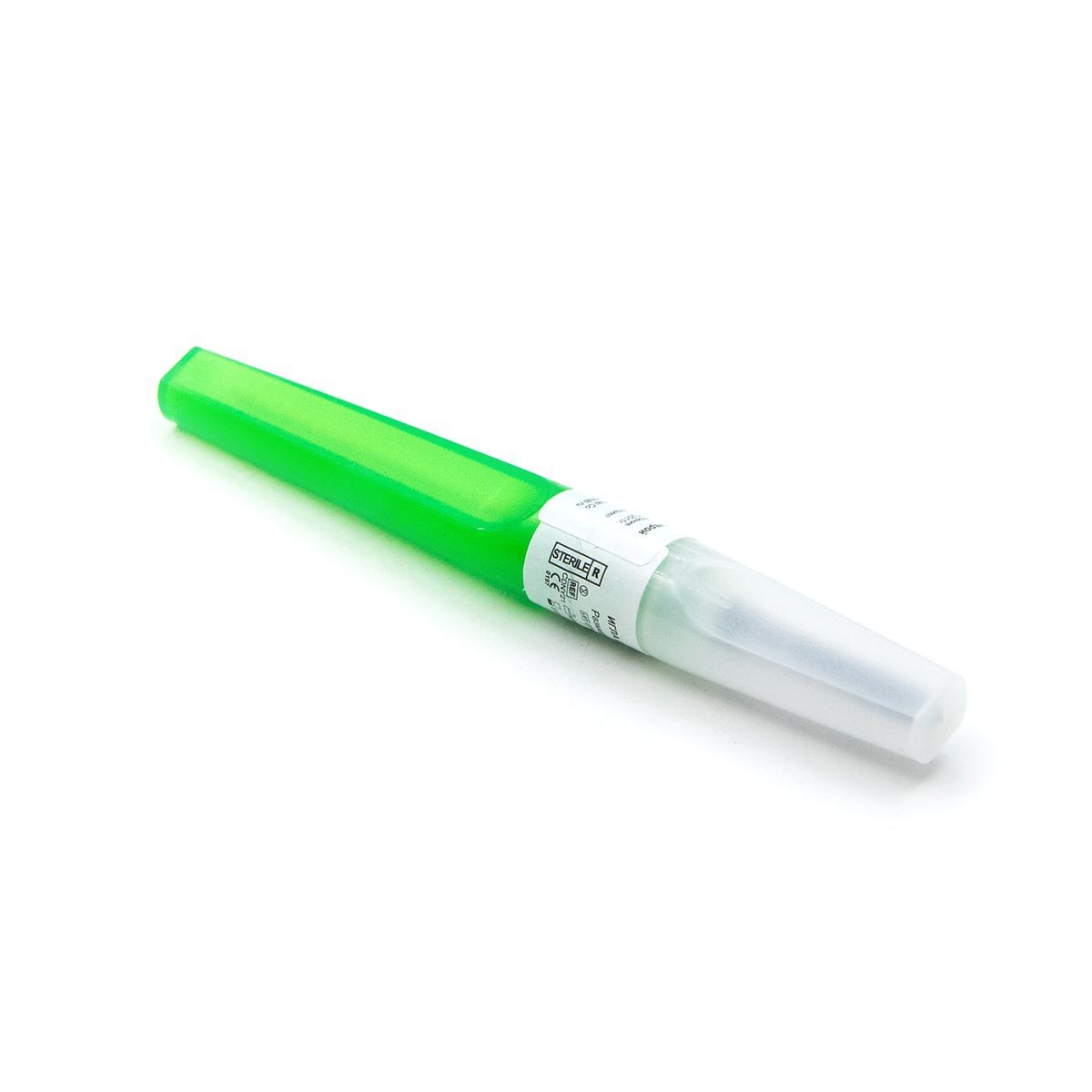 Игла двухсторонняя 21G*1 1/2 с прозрачной камерой 1,5см, зелёная (50 шт/уп).