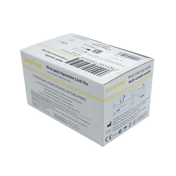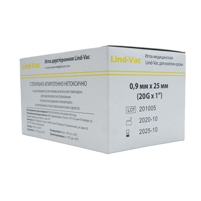 Игла двусторонняя для забора крови Lind-Vac 0,9 мм х 25 мм (20G х1''), 100 шт/уп
