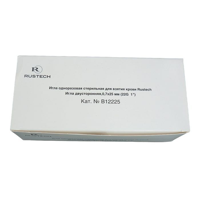 Игла одноразовая двусторонняя стерильная для взятия крови 0,7х25мм (22G 1) Rustech, 100 шт/уп