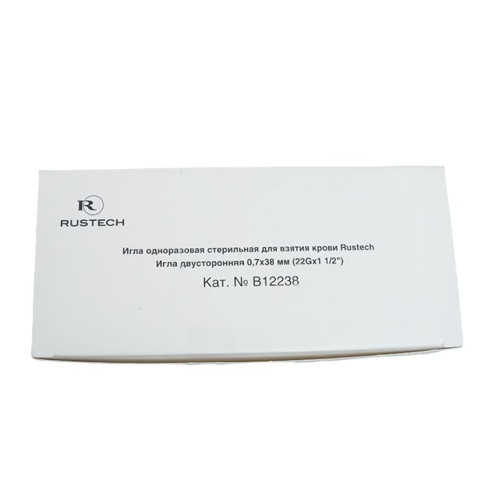 Игла одноразовая двусторонняя стерильная для взятия крови 0,7х38мм (22G 1 1/2) Rustech, 100 шт/уп