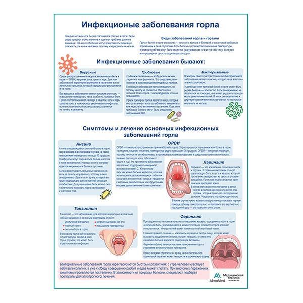 Инфекционные заболевания горла медицинский плакат А1/A2