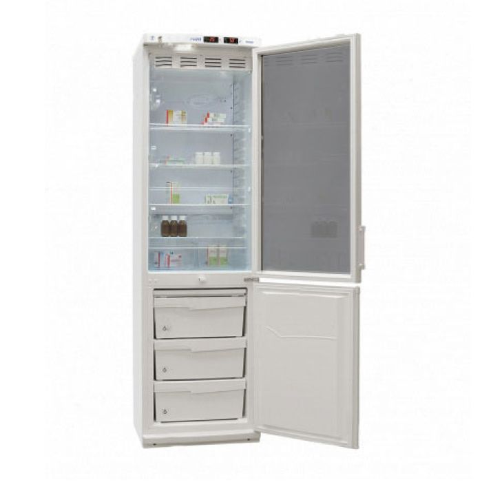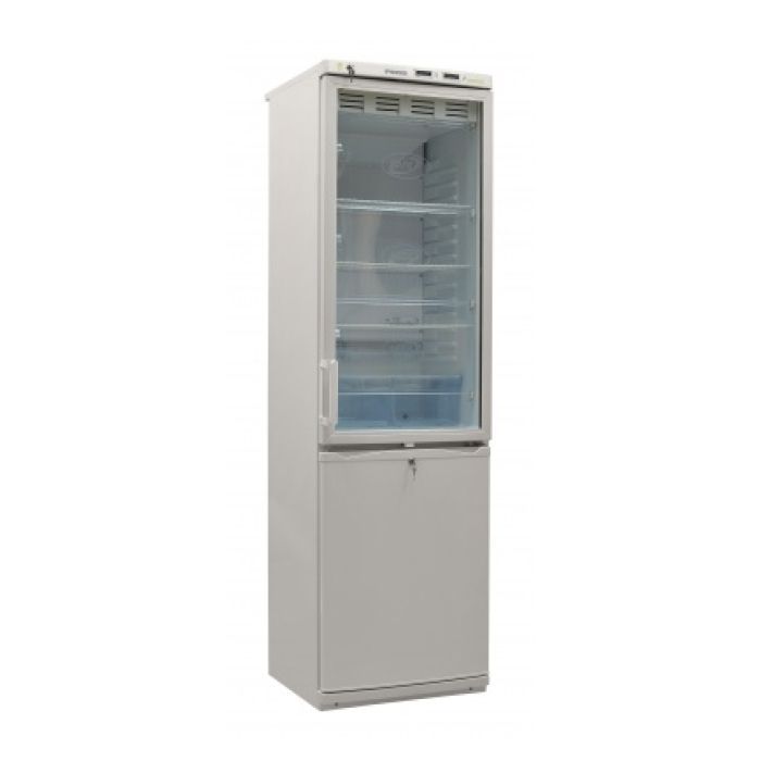 Холодильник комбинированный лабораторный ХЛ-340-1(ТС) ПОЗиС (270/130 л) с тонированной стеклянной дверью, дверью из металлопласта и блоком управления БУ-М01, серебро