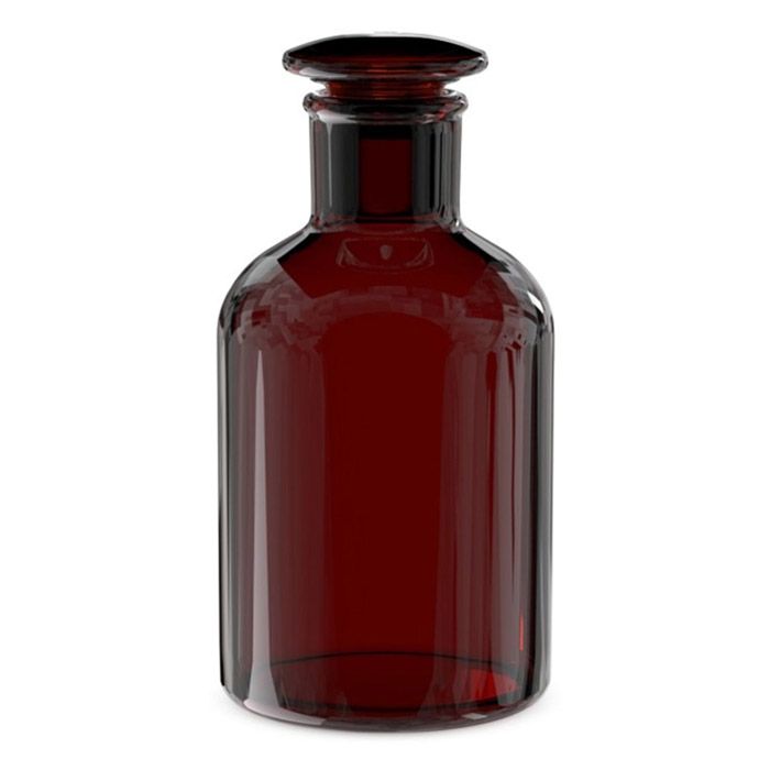 Склянка для реактивов на 1000 мл из темного стекла с широкой горловиной и притертой пробкой, Россия