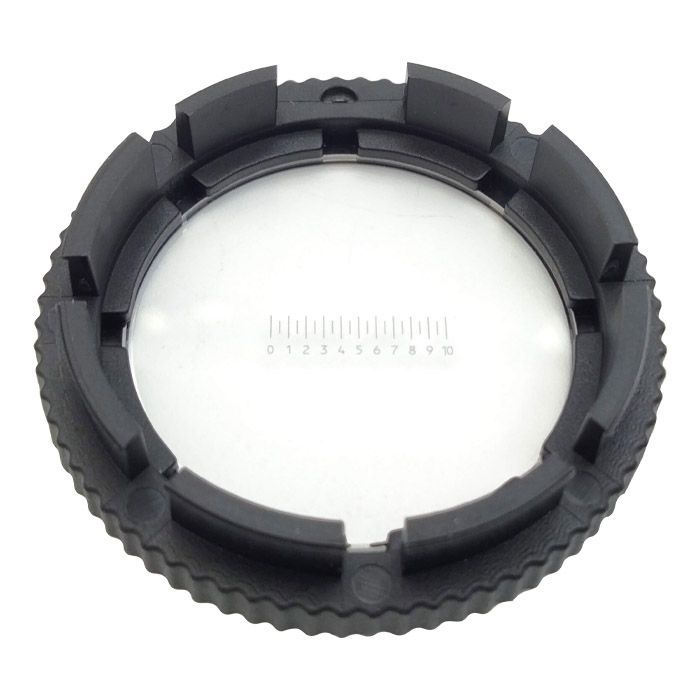 Металлическая головка и рукоятка, ксенон-галогенная лампа 2,5 В (яркость 15 000 Люкс, ресурс лампы ~20 часов), 10-кратное увеличение, контактное стекло Ø25 мм со шкалой, регулировка фокуса от –6 до +3,5 дптр, питание от 2 батареек типа С (не входят в комплект) или аккумулятора 2,5 В, вес ~0,5 кг, габариты 20×15×5 см.