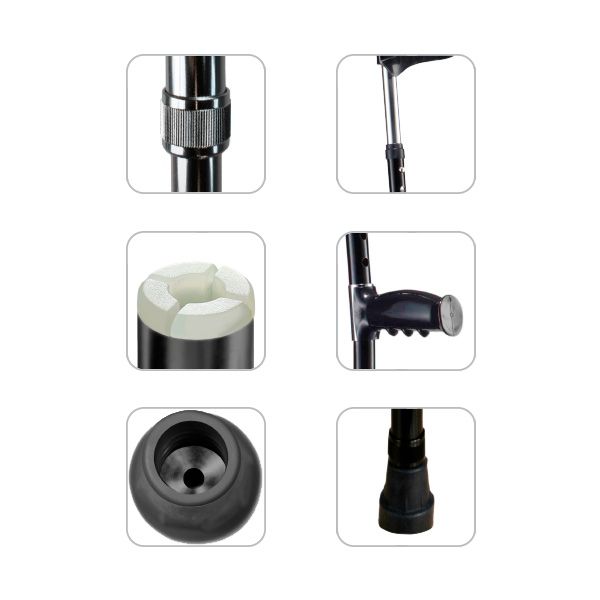 Регулируемая высота костыля и высота расположения ручки. Кнопочный замок и фиксирующее кольцо