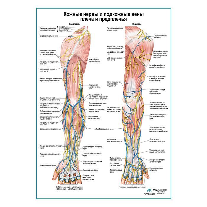 Кожные нервы и подкожные вены плеча и предплечья плакат А1+/А2+