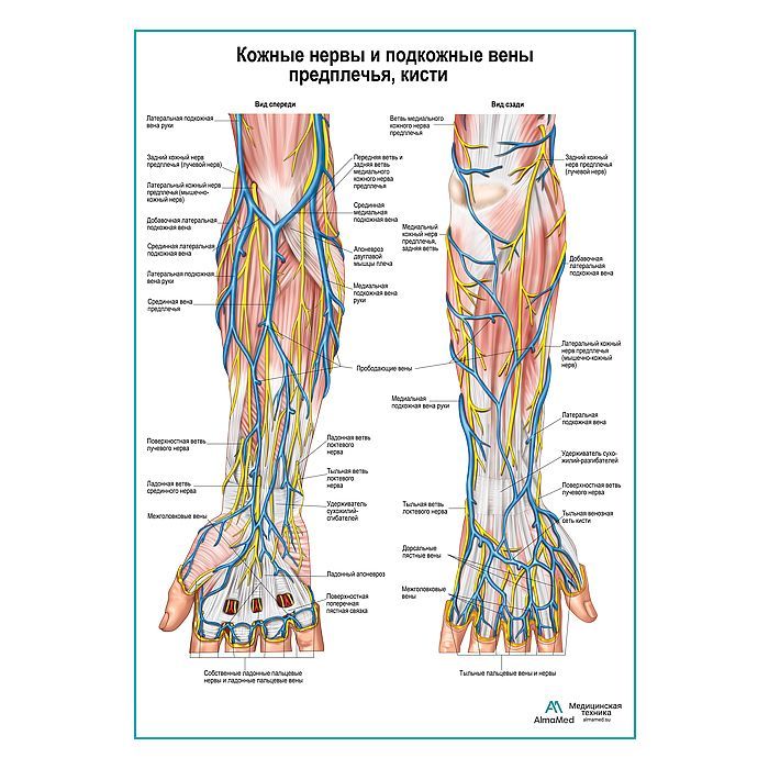 Кожные нервы и поверхностные вены предплечья плакат глянцевый А1+/А2+