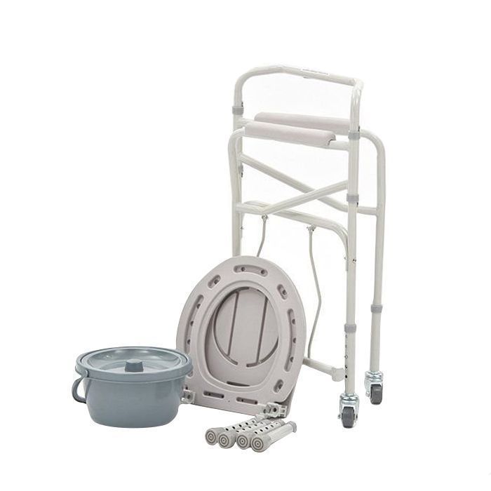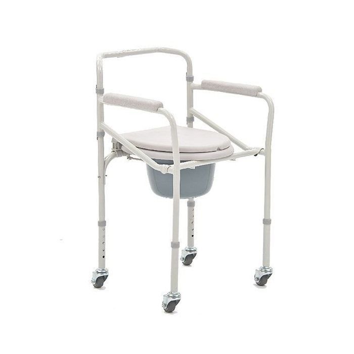 Задние колеса оснащены тормозами Съемная санитарная емкость Материал санитарной ёмкости: пластик Материал рамы: металл Расстояние между поручнями: 555 мм