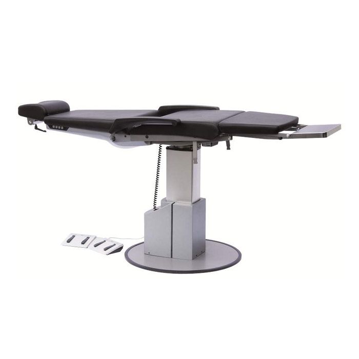 Вмонтированный в спинку кресла ручной пульт управления электроприводом. Дополнительный операционный регулируемый ЛОР-подголовник. Детское сидение