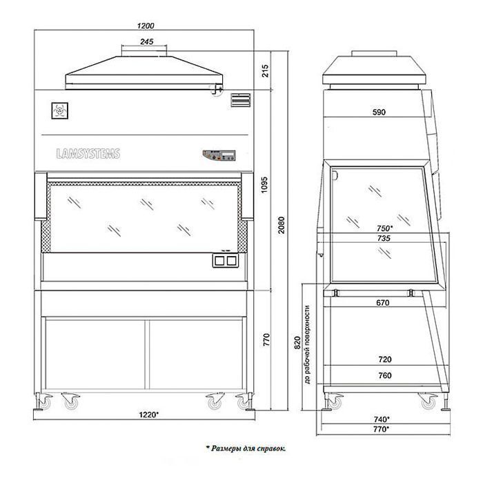 Размеры рабочей камеры: 1430х625х650 мм