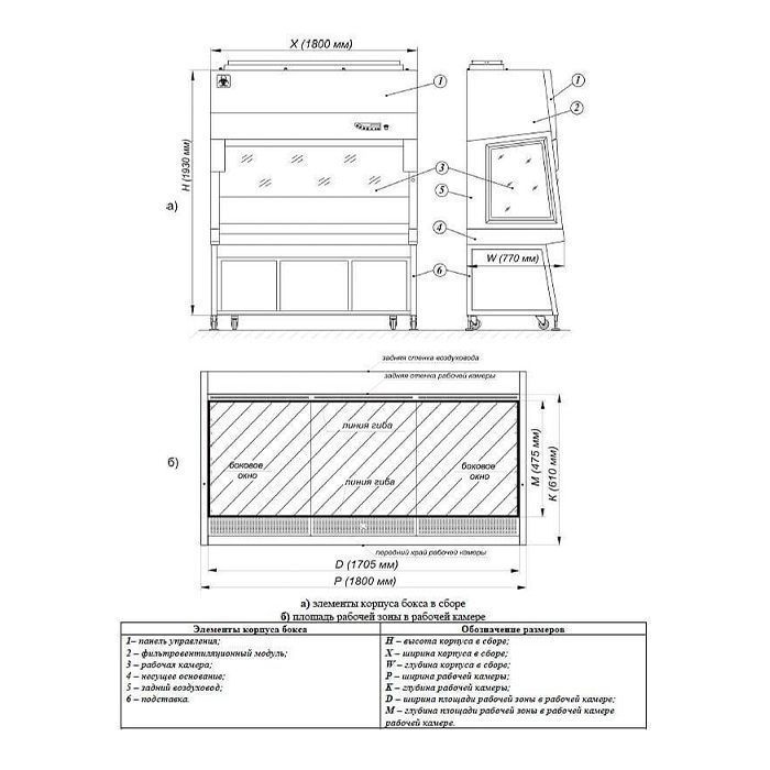 Размеры корпуса бокса ( Ш × Г × В ) на стандартной подставке, без учёта колёс, опор, крышки верхней, зонта вытяжного