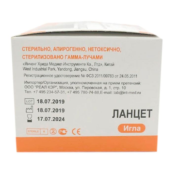 Получаемый объем крови: 200+ мкл Глубина прокола: 1,8 мм Игла 18G (1,2мм)