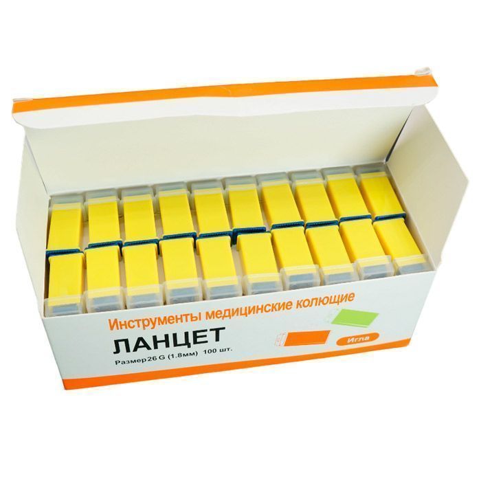 Ланцет автоматический 26G с иглой, глубина прокола 1,8 мм, Yancheng, 100 шт/уп