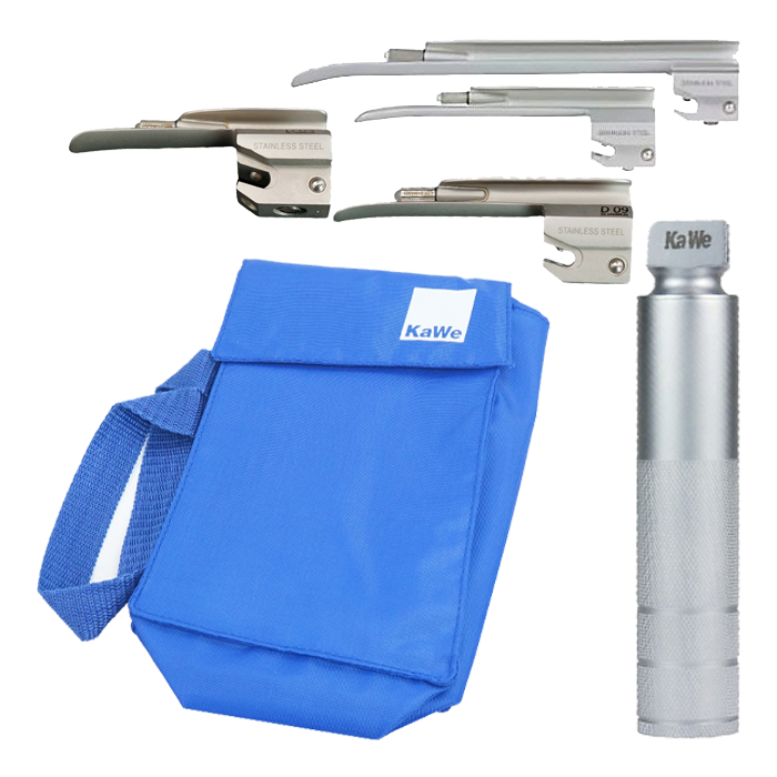 Ларингоскоп с набором клинков Miller (№ 00, 0, 1, 2) на батарейках, лампочка вакумная, прямой клинок