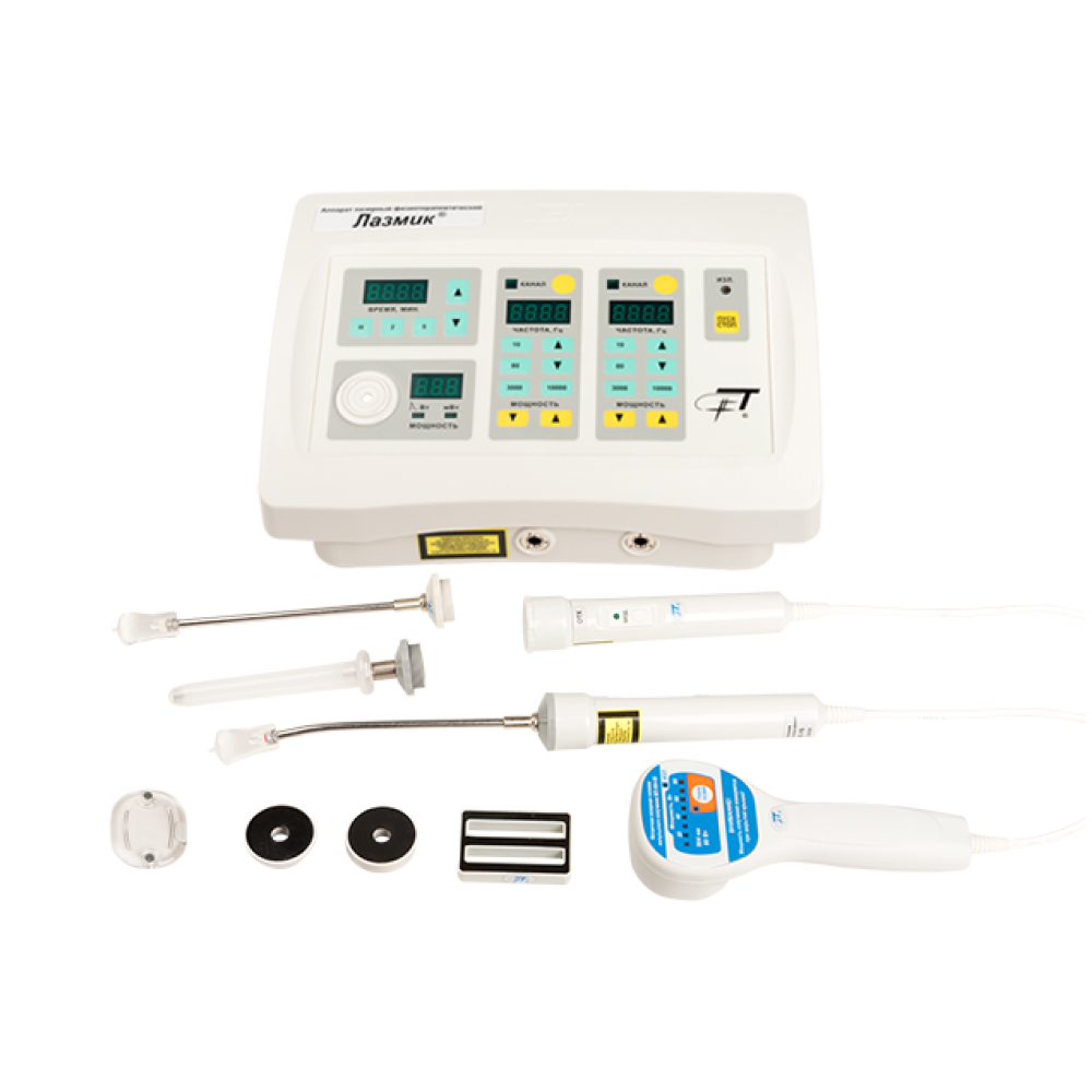 Базовая комплектация товара Аппарат лазерный терапевтический ЛАЗМИК-01. Два лазерных канала 1 шт. Лазерная головка импульсного излучения ЛО-904-20 1 шт. Лазерная головка непрерывного излучения КЛО-635-15 1 шт. Матричная лазерная головка импульсного излучения МЛ-904-80 1 шт. Насадки гинекологические Г-1, Г-2, Г3 3 шт. Магнитная насадка ММ-50 для МЛ-904-80 1 шт. Магнитная насадка ЗМ-50 1 шт. Зеркальная насадка ЗН-35 1 шт. Комплектация приборов может изменяться заводом-изготовителем, уточняйте у менеджера.
