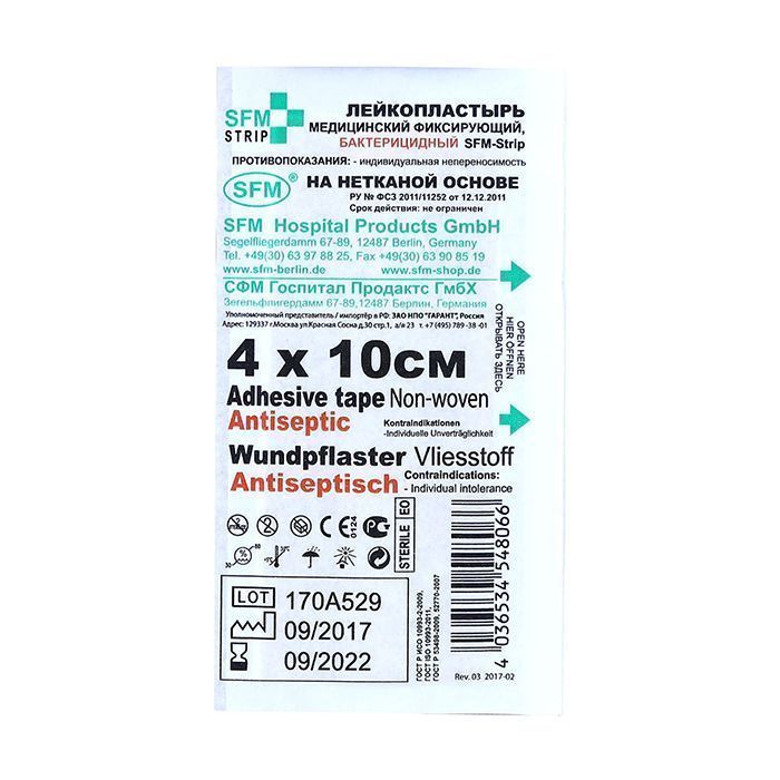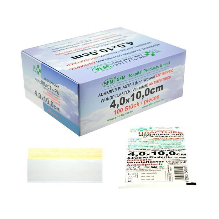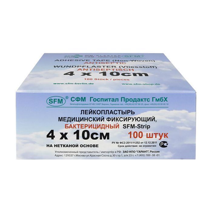 Лейкопластырь бактерицидныйSFM-Strip, 4,0 см х 10,0 см №1, полимерная основа, 100 шт/уп