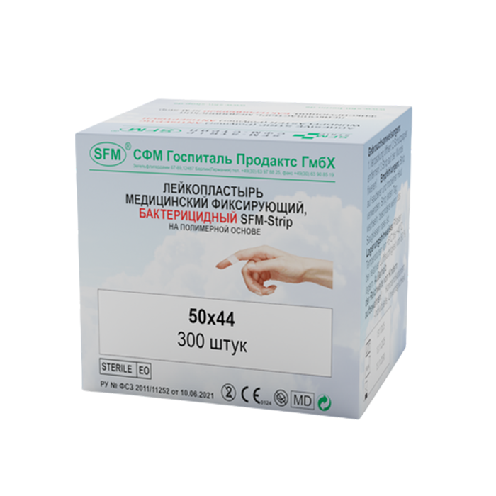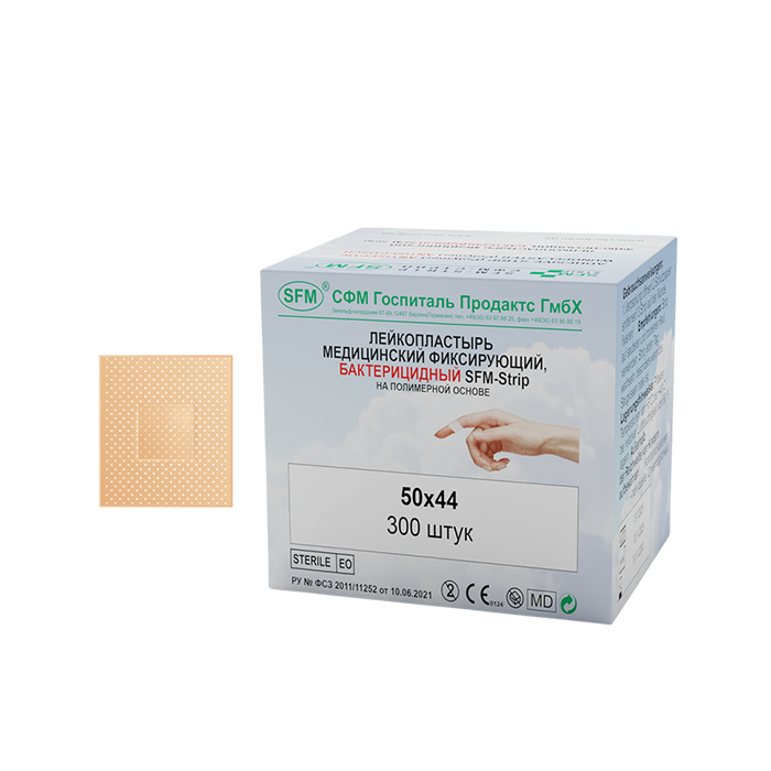 Лейкопластырь бактерицидный SFM-Strip, 5,0 см х 4,4 см №1, полимерная основа, 300 шт/уп