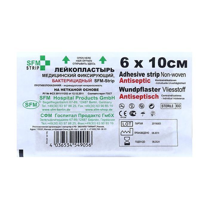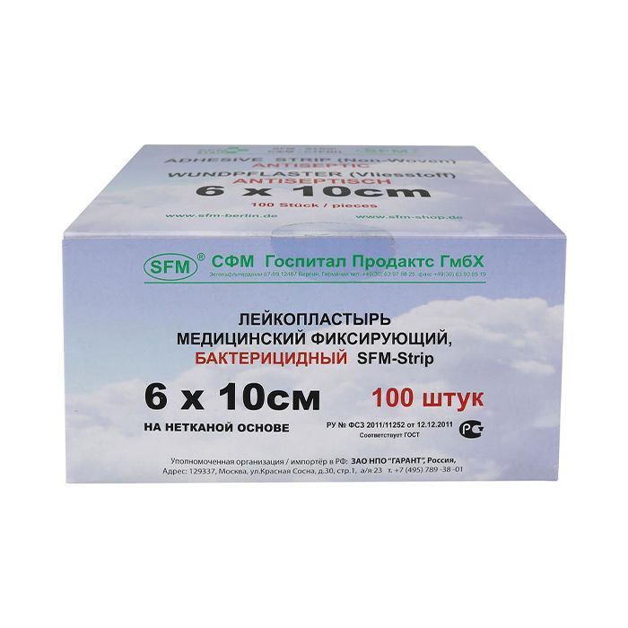 Лейкопластырь бактерицидный SFM-Strip, 6,0 см х 10,0 см №1, нетканая основа, 100 шт/уп