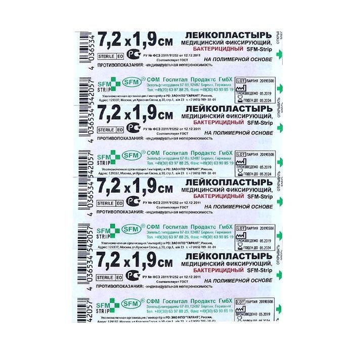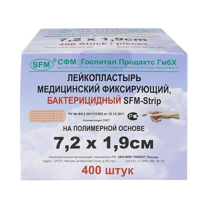 Лейкопластырь бактерицидный SFM-Strip, 7,2 см х 1,9 см №1, полимерная основа, 400 шт/уп