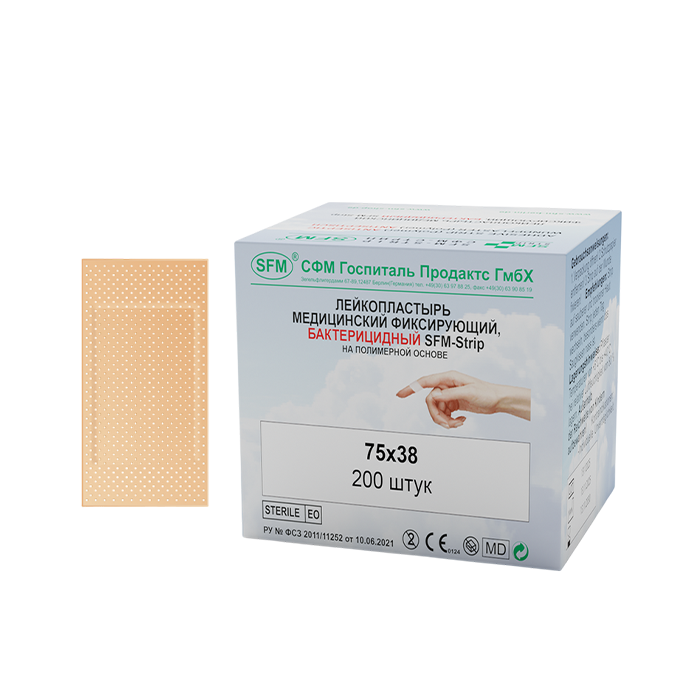 Лейкопластырь бактерицидный SFM-Strip, 7,5 см х 3,8 см №1, полимерная основа, 200 шт/уп